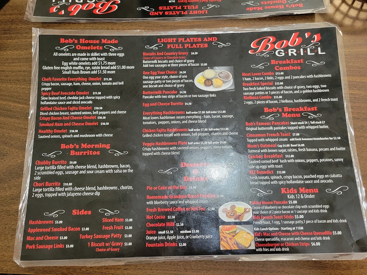Welcome to Bob's Grill & Cafeteria Menu!